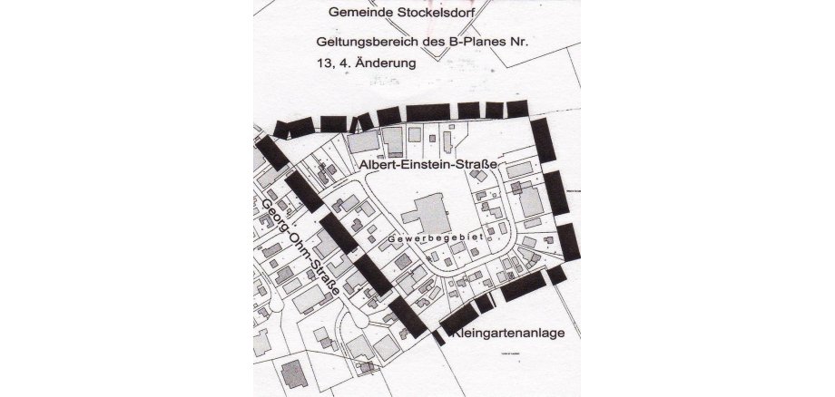 Die Gemeindevertretung hat beschlossen, für das Gewerbegebiet „Albert-Einstein-Straße“, Gebiet nördlich der Kleingartenanlage, östlich der rückwärtigen Bebauung der Georg-Ohm-Straße die 4. Änderung des Bebauungsplanes Nummer 13 aufzustellen.