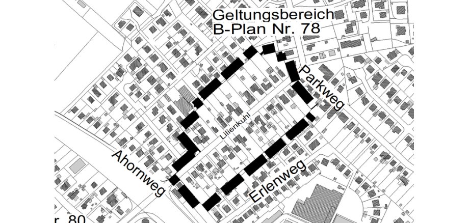 Die Gemeindevertretung der Gemeinde Stockelsdorf hat in ihrer Sitzung am 08.07.2014 beschlossen, für das Gebiet südöstlich und nordwestlich des Lilienkuhls sowie nordöstlich des Ahornweges und südwestlich des Parkweges den Bebauungsplanes Nr. 78 zum Zwecke der geordneten städtebaulichen Entwicklung aufzustellen.