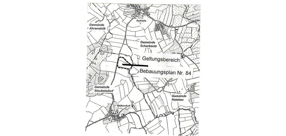 2. Erlass einer Veränderungssperre gemäß § 14 folgende BauGB für den künftigen Bebauungsplan Nummer 84 „Fläche für Windkraft in der Gemeinde Stockelsdorf“ für das Gebiet nördlich der Dorfschaft Malkendorf, östlich des Curauer Moores, südlich der Dorfschaft Sarkwitz (Gemeinde Scharbeutz) sowie nordwestlich der Dorfschaft Rohlsdorf (Gemeinde Ratekau)