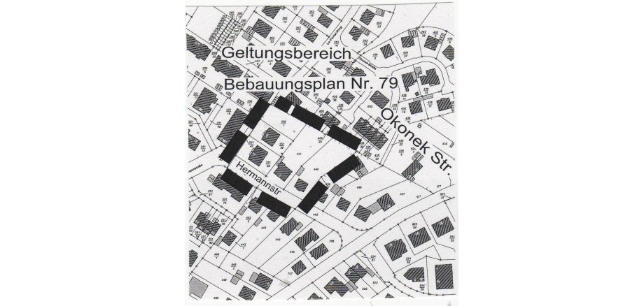 Aufstellung des Bebauungsplanes Nummer 79 für das Gebiet nordöstlich der Hermannstraße (zwischen den Hausnummern 6 und 16a-g) und südwestlich der rückwärtigen Wohnbebauung der Okonek Straße (Hausnummern 7c, d, e, 11 und 11a) und des Le-Portel-Ringes 18