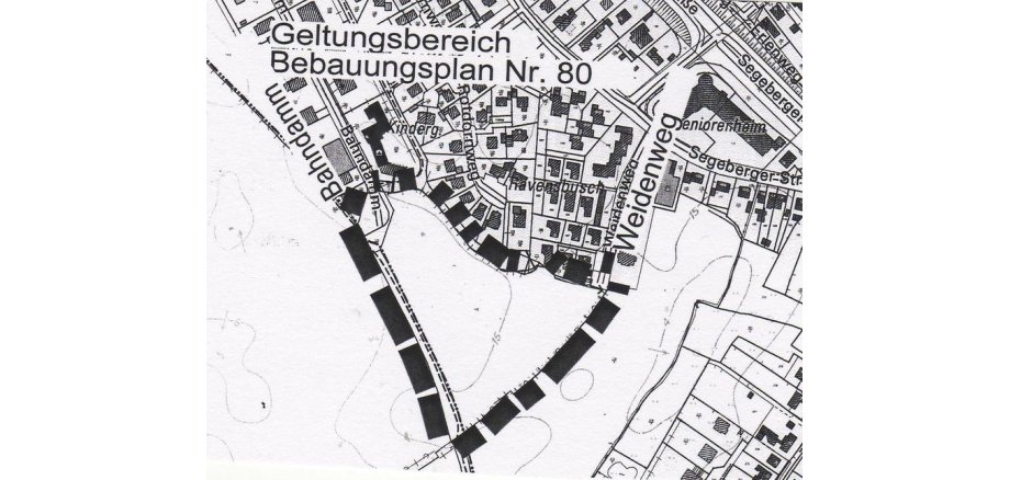 hier: Bekanntmachung des Satzungsbeschlusses gemäß § 10 Baugesetzbuch (BauGB) zur Aufstellung des Bebauungsplanes Nummer 80 für das Gebiet südlich der Straße Bahndamm, südwestlich des Weidenweges sowie nordöstlich der Gemeindegrenze zu Lübeck
