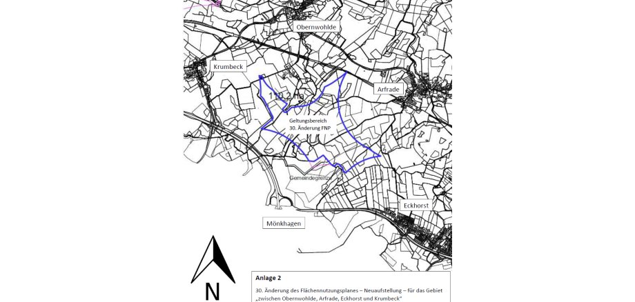 Die Gemeindevertretung der Gemeinde Stockelsdorf hat in ihrer Sitzung am 10.02.2025 beschlossen, für das Gemeindegebiet die 30. Änderung des Flächennutzungsplanes - Neuaufstellung - für das Gebiet zwischen Obernwohlde, Arfrade, Eckhorst und Krumbeck aufzustellen.