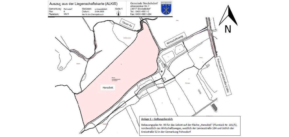 a) die 34. Änderung des Flächennutzungsplanes - Neuaufstellung - für das Gebiet auf der Fläche „Hansdiek“ (Flurstück Nr. 181/5), nordwestlich des Wirtschaftsweges, westlich der Landesstraße 184 und östlich der Kreisstraße 52 in der Gemarkung Pohnsdorf