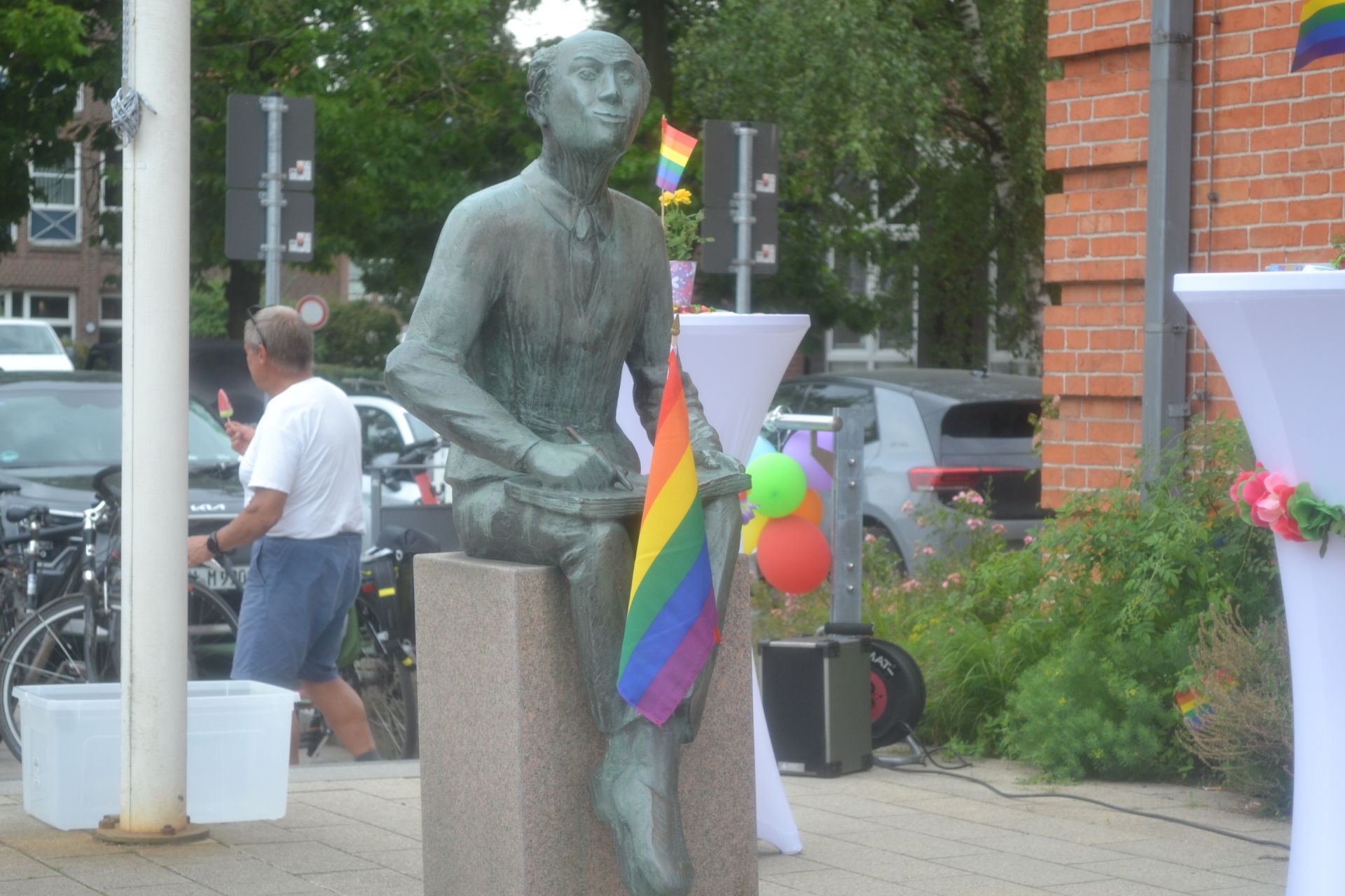 Am Donnerstag vor dem Straßenfest des Christopher Street Days (CSD) in Lübeck werden traditionell vor dem Stockelsdorfer Rathaus die Regenbogenflaggen gehisst.