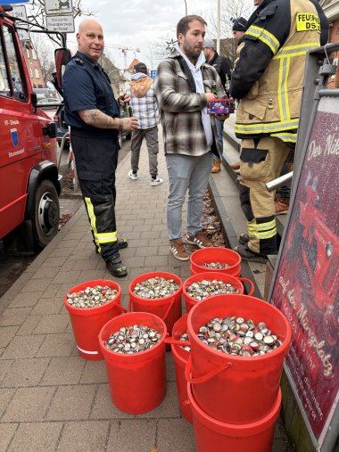Nichts ahnend wurde Hauke an seinem Ehrentag zum Stockelsdorfer Rathaus „entführt“. Dort angekommen, erwartete ihn nicht nur eine Verkleidung als Reinigungskraft, sondern auch ein wahrer Berg an Kronkorken, der unter großem Gelächter die Rathaustreppe hinabgeschüttet wurde. Damit begann für das Geburtstagskind die Aufgabe des Tages: fegen, fegen und nochmals fegen.