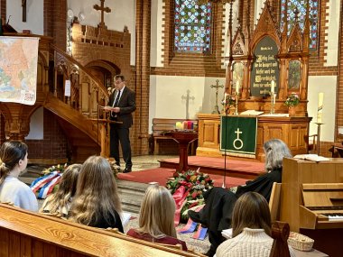 Vor der Kranzniederlegung wurde ein von Pastorin Almuth Jürgensen und ihren Konfirmandinnen und Konfirmanden gestalteter Friedensgottesdienst in der Stockelsdorfer Kirche gefeiert.