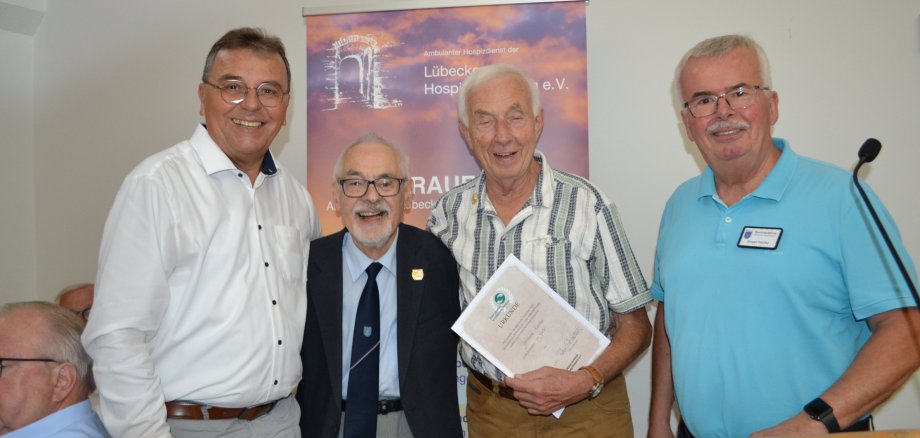 Siegfried Müller und Gerhard Mascher wurden für ihre Verdienste um die Seniorenarbeit in Stockelsdorf mit der Goldenen Ehrennadel des Landesseniorenbeirats Schleswig-Holstein e. V. ausgezeichnet.