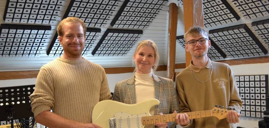 Mit am Start sind Philip Speer, studierter Musikwissenschaftler und Philosoph, Liam-Jay Christiansen vom AKJuZu und die Gemeindejugendkoordinatorin Jenni Sjöholm. Gemeinsam begleiten sie das Projekt mit viel Know-how, guter Laune und einem offenen Ohr für alle Ideen.