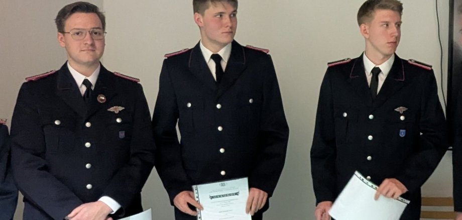 Aus der Jugendfeuerwehr verabschiedet wurden Joell Collin Kahns, Christoph Meyer und Frederik Zwiener. Alle drei absolvierten erfolgreich den Truppmann-I-Lehrgang und wurden im Rahmen emotionaler Laudationen für ihr Engagement gewürdigt. Joell Kahns und Frederik Zwiener wurden an die Freiwillige Feuerwehr Mori, Christoph Meyer an die Freiwillige Feuerwehr Arfrade überstellt.