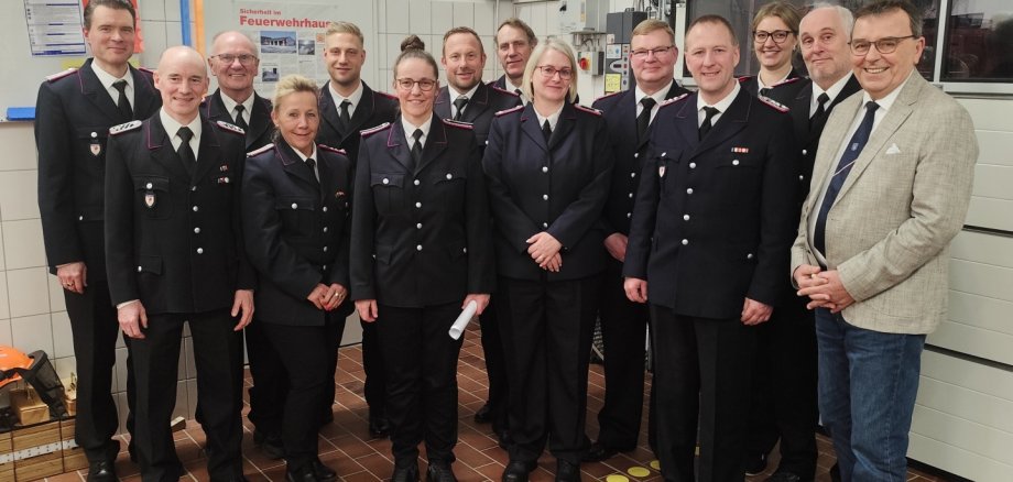 Im weiteren Verlauf der Versammlung standen auch Wahlen und Ehrungen auf der Tagesordnung. Georg Muus wurde für weitere sechs Jahre als stellvertretender Ortswehrführer wiedergewählt. Ewa Buchholz und Laura Schacht wurden zu Feuerwehrfrauen ernannt, Kevin Ciesler zum Feuerwehrmann. Eine Beförderung erhielt Marcus Wenck, der durch Gemeindewehrführer Schöppich zum Oberfeuerwehrmann ernannt wurde.
