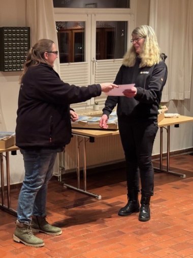 Annica Hansen für 10 Jahre Mitgliedschaft in der BRH-Rettungshundestaffel Schleswig-Holstein Ost e.V. und Heidi Deinert-Theine für 10 Jahre Mitgliedschaft im BRH, davon 3 Jahre in der Staffel Schleswig-Holstein Ost.